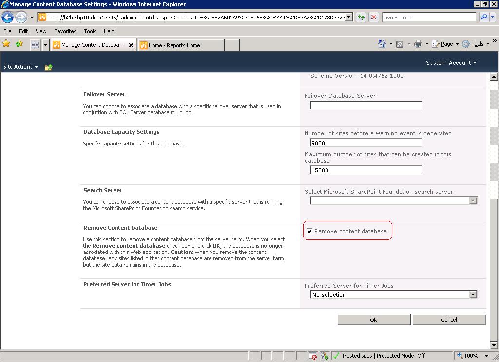 After open the content database setting page, change Database Status "Ready" to "offline".